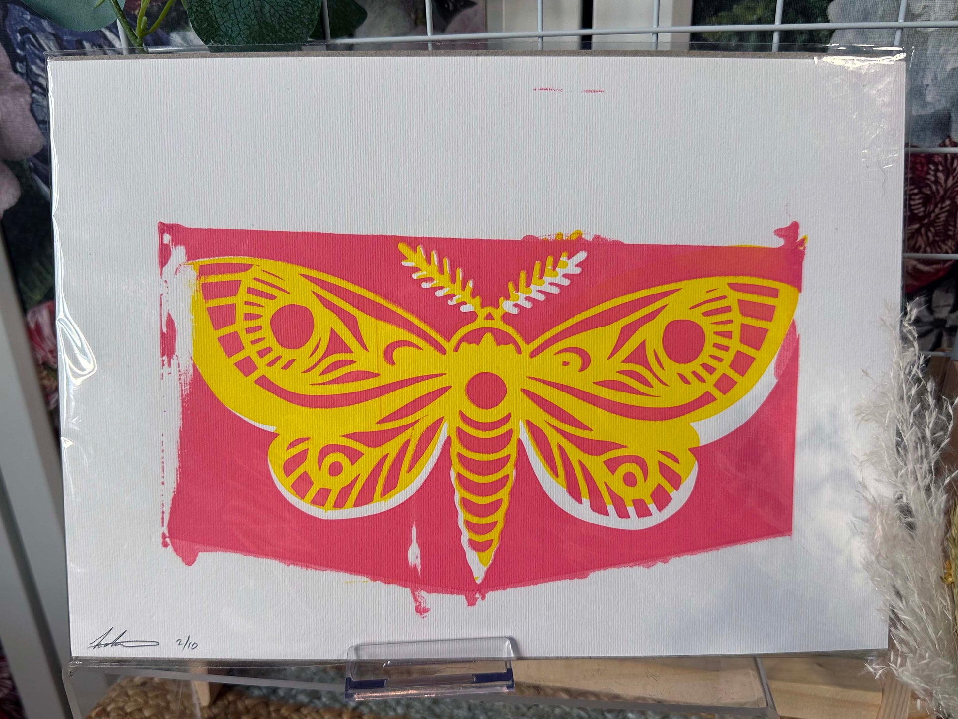 This vibrant hand-pulled screen print celebrates the symmetry and symbolism of the moth, featuring bold yellow set against a vivid pink background. Inspired by my original artwork, each print is pulled by hand, giving every piece its own unique character and charm.