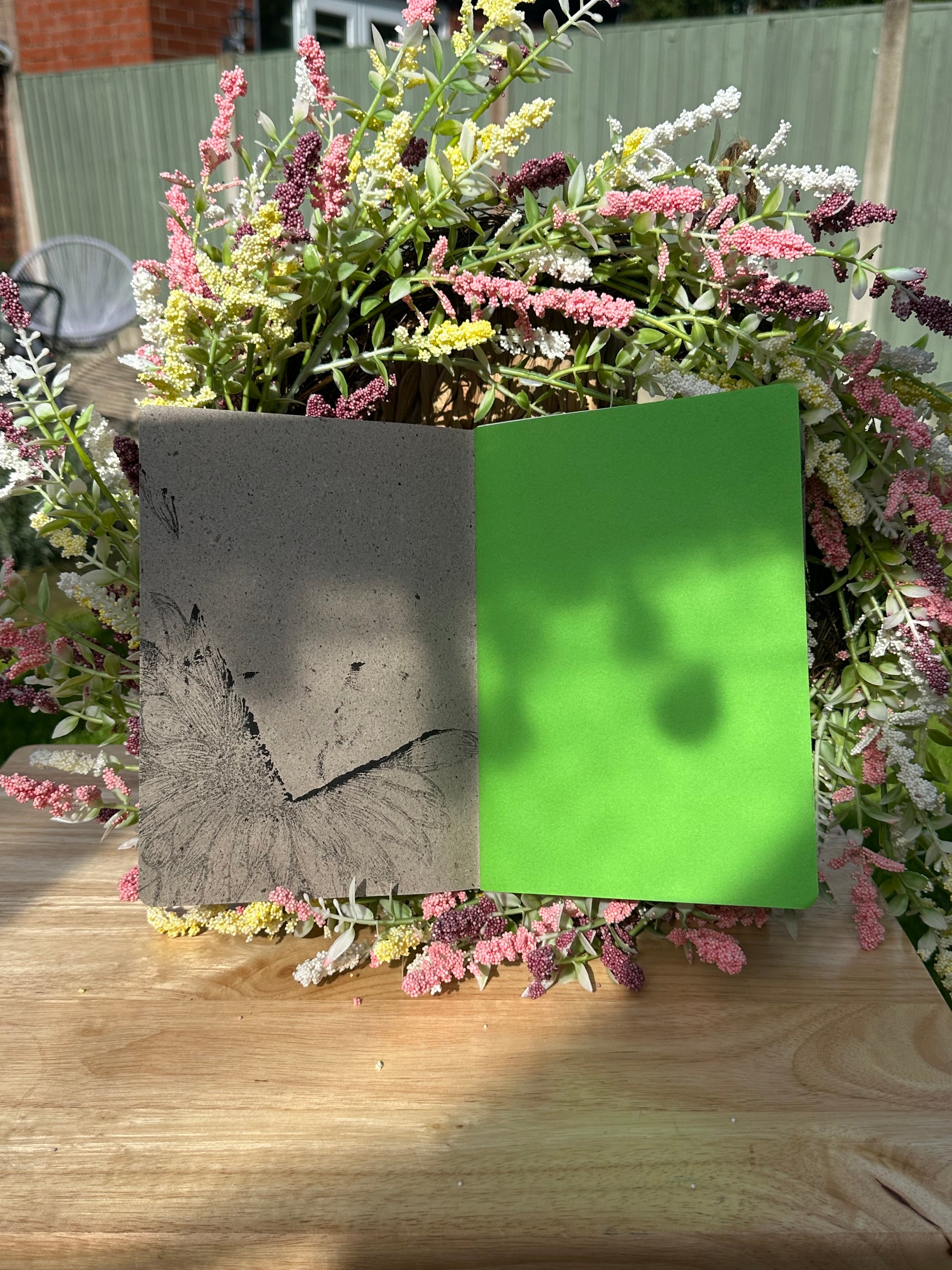 Each journal is carefully crafted by hand, making it a truly unique piece of functional art. The sunflower design began as one of my own sketches, which I then transformed into a screen for printing. Every cover is individually hand-pulled, so no two prints are ever exactly the same. The natural variations in ink and texture are what give each journal its one-of-a-kind charm.