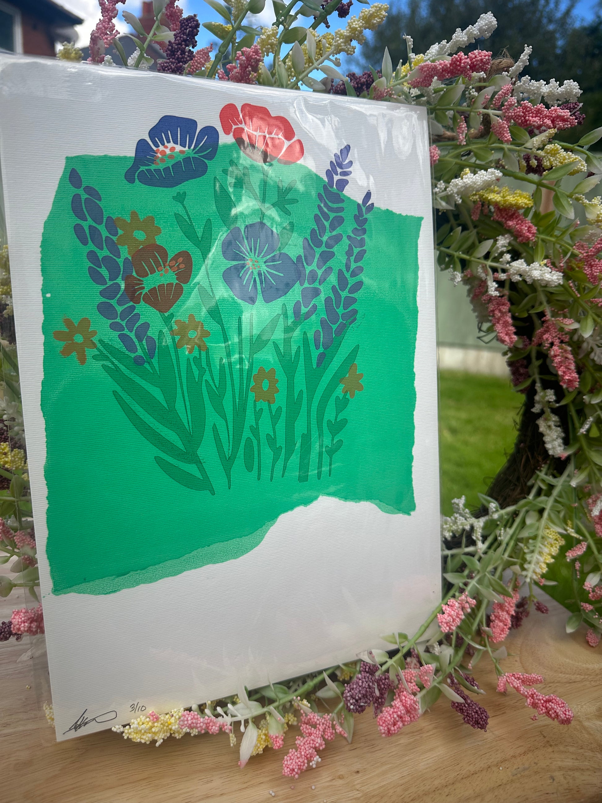 This artwork began as a digital drawing of a wildflower, later transformed into a hand-pulled screenprint. While created with the same care as my other editions, this particular print is a misprint, giving it its own character and making it a true one-off.