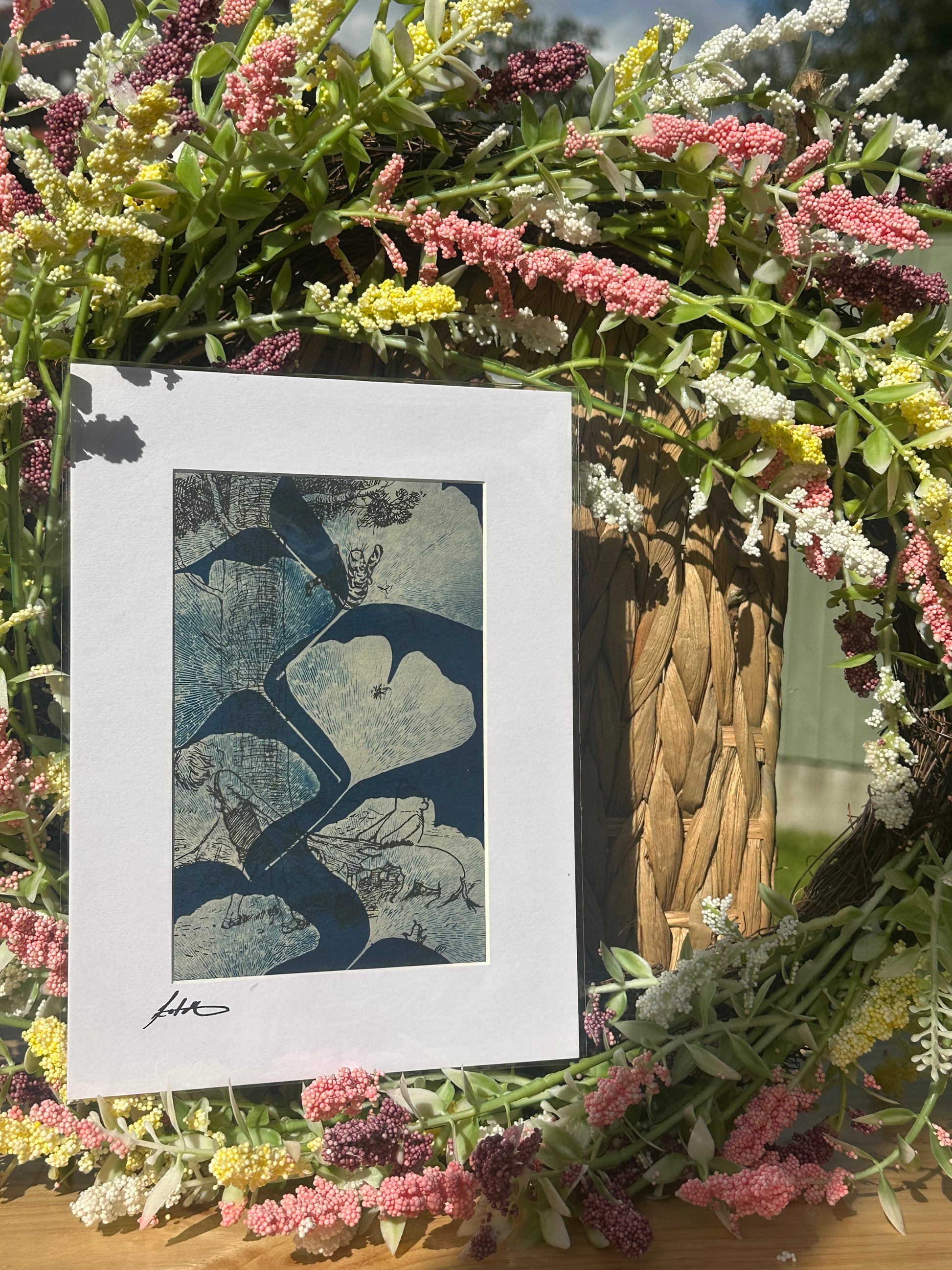 The print measures 8” x 6” and comes card mounted, ready for you to frame or gift. Each one is unique, as no two book pages are ever the same. Please note: all book copyrights remain with the original authors — this artwork represents only my printmaking.